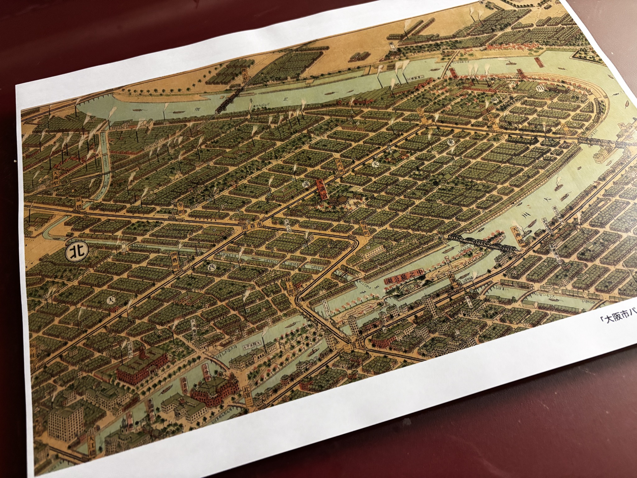 当日は、大阪市パノラマ地図(大正13)をご用意。こいつを片手に、まちを歩きませう☆