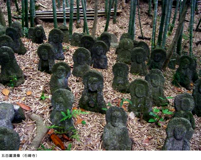 | 釈迦の弟子となり、仏教を広め伝えた僧たちのことを阿羅漢と呼び、親しみを込めて羅漢と呼ぶ。釈迦の涅槃寺に立ち会った羅漢の数が500人、その百年後に新たに700人の羅漢が集結し、仏教を正しく伝えるための勉強会を開いた。そのことから、千二百羅漢という呼び名が定着した。愛宕寺では、寺の復興を祈願して、参拝者に1200体の羅漢像を彫ってもらった。したがって、これらの像は、仏師の手になるものではない。しかし、魂が入っていれば、それは立派に仏像になりうるのだ。 |