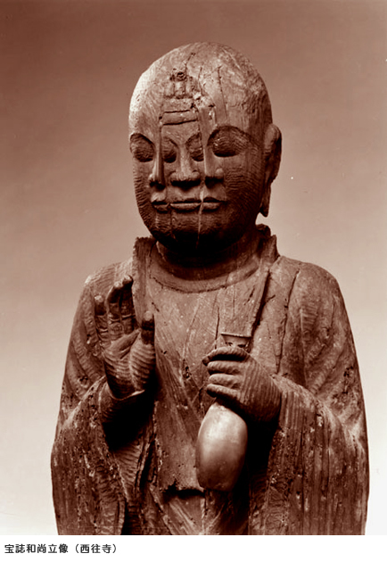 おそらく、これほどインパクトのある仏像はない。なんと和尚さんの顔が真っ二つに割れ、中から十一面観音が出てくるのである。宝誌和尚は実在した中国南北朝時代の高僧で、梁国の武帝が絵師に和尚の肖像を描くよう命じると、和尚の顔が割れて中の菩薩がどんどん変化するので、結局は顔を描くことが出来なかったという。その逸話から、この造形が生まれた。
