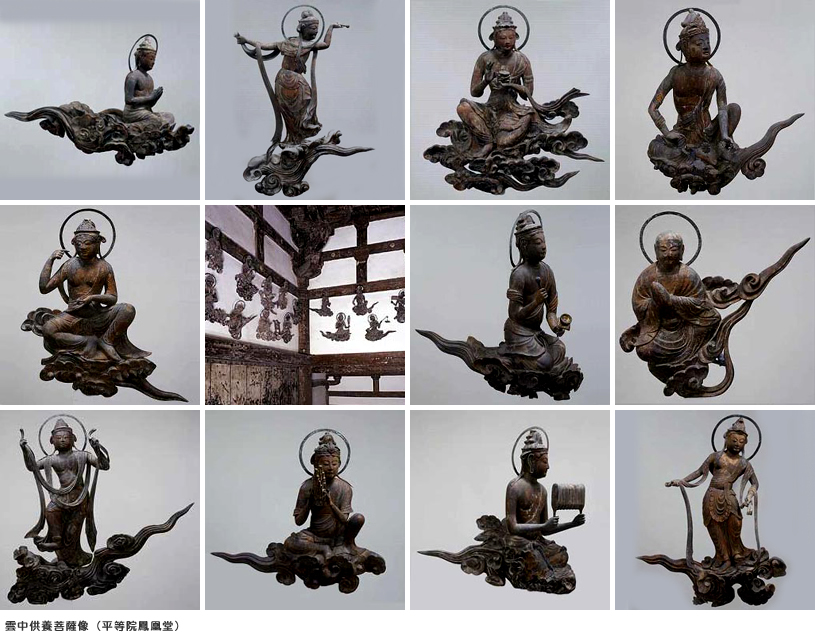 京都は宇治にある平等院鳳凰堂。この中堂に、定朝作の御本尊・阿弥陀如来坐像を取り囲むように中堂内壁に52体の雲中供養菩薩像たちが飛びまわっている。荒々しいタッチだが、どれも優しい顔立ちで、観ていて飽きない。